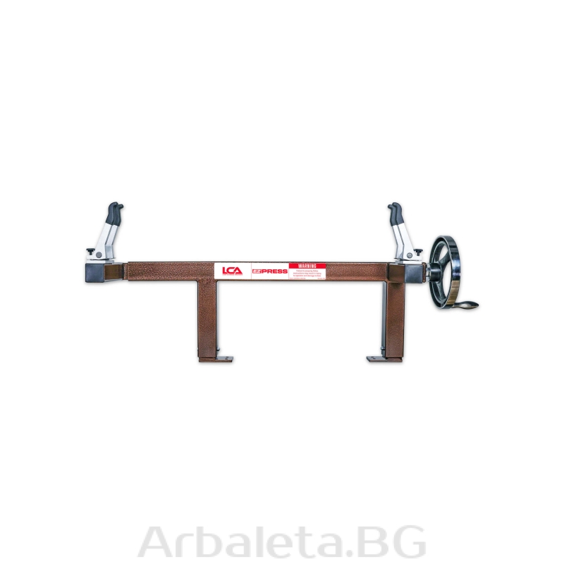 - Универсален работен диапазон: С диапазон от 25„ до 48“ (от ос до ос), тази преса обхваща по-голямата част от ловните и състезателни лъкове.
