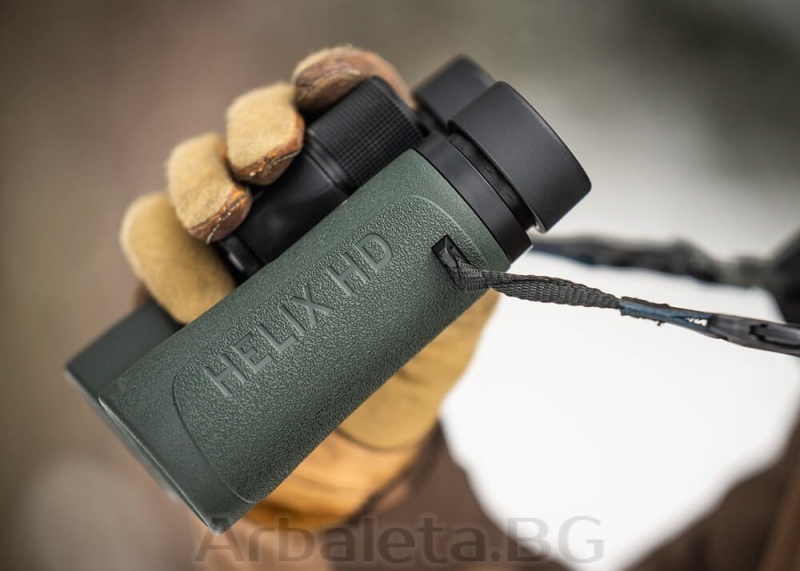 - Широко зрително поле: С отвор от 14,2 метра на 100 метра, Helix HD 8x42 позволява бързо сканиране на пейзажа и лесно проследяване на движещи се обекти.