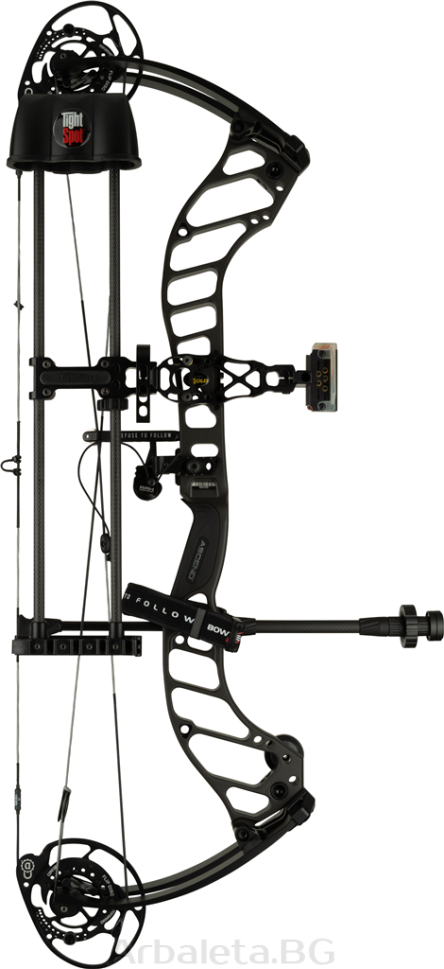 Accesorii suplimentare: Sling de mână Bowtech și Peep sight din carbon preinstalat.